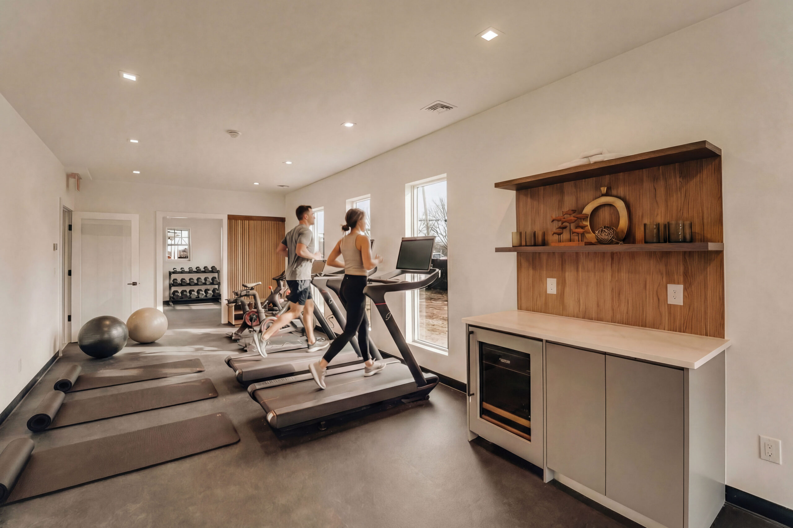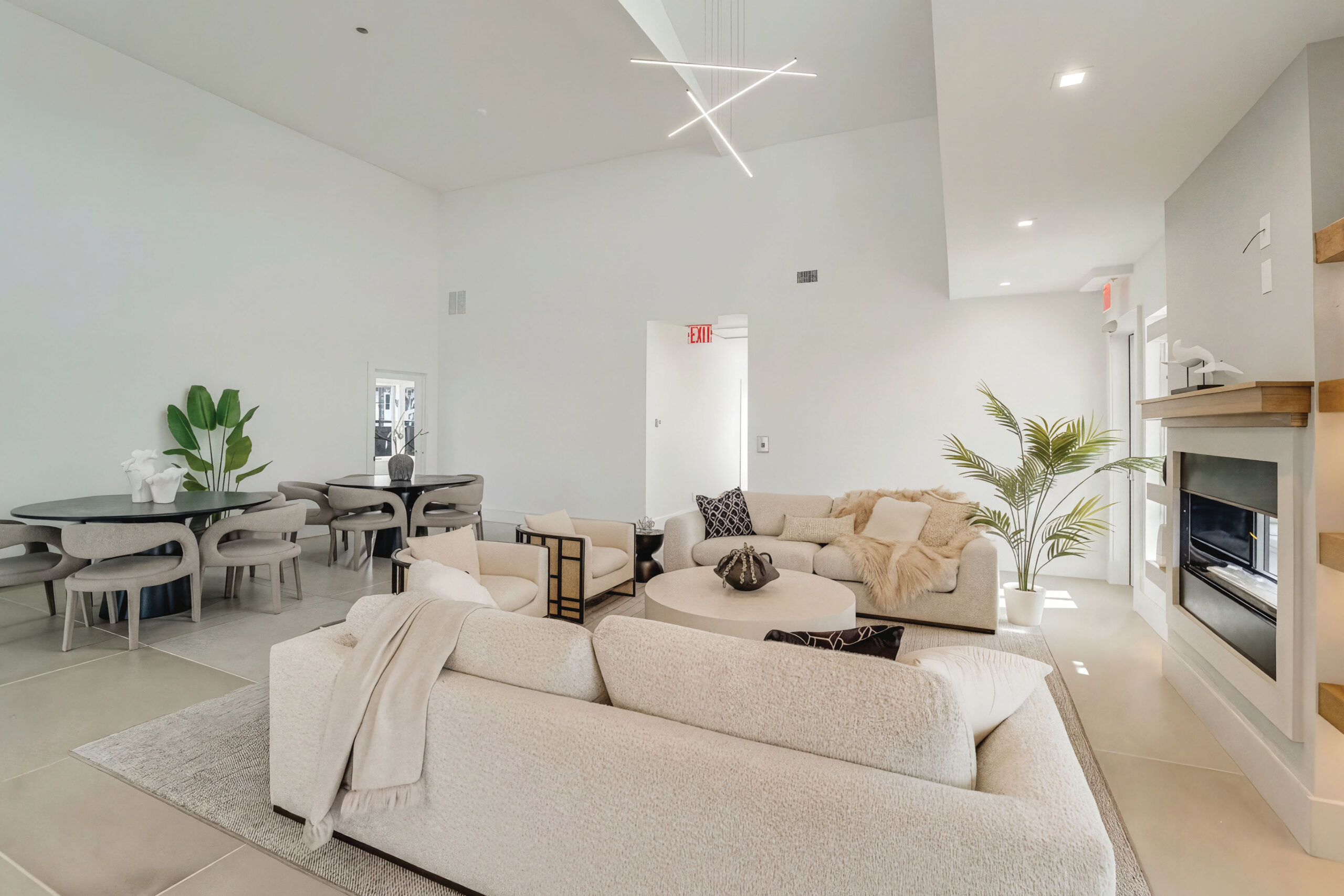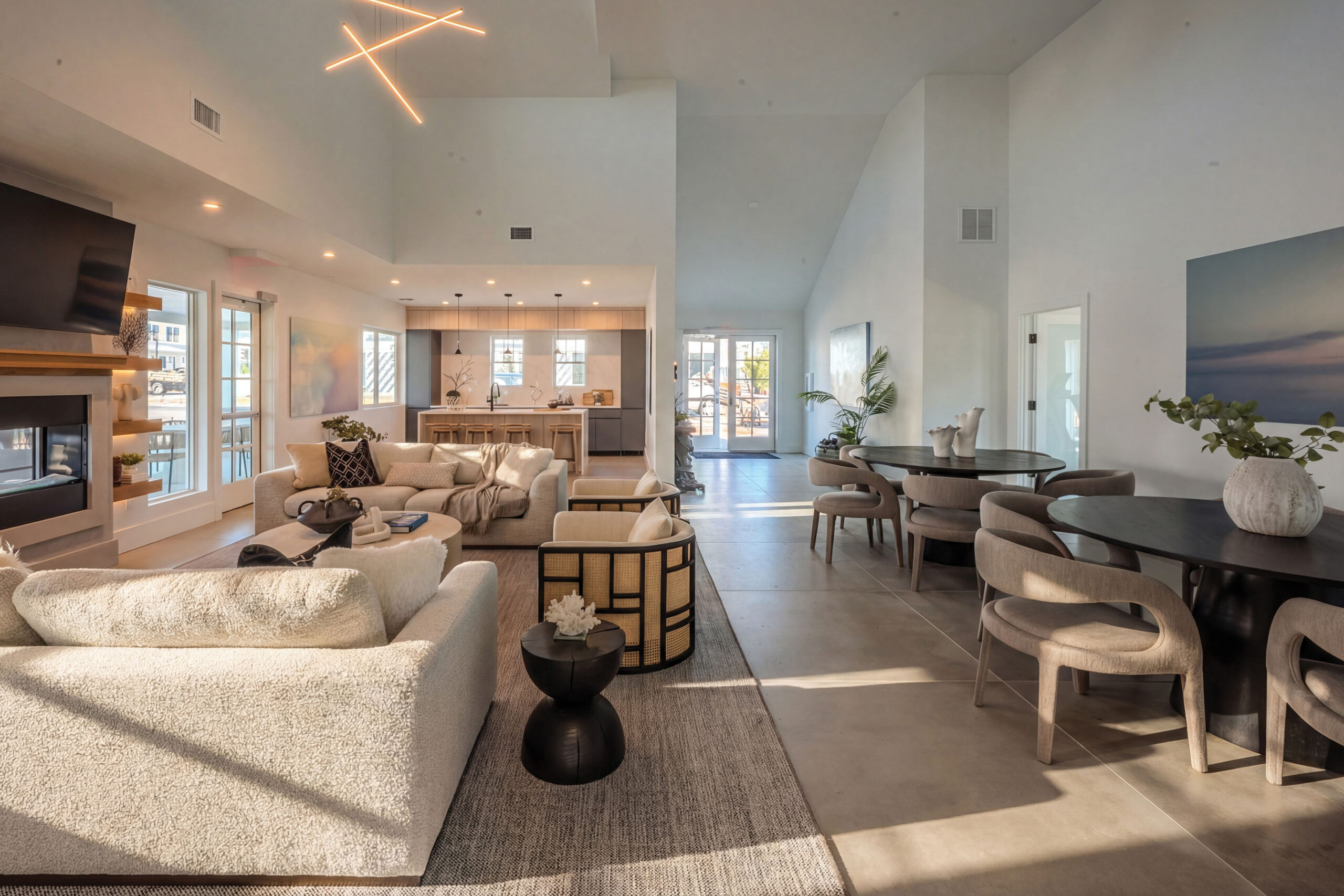 Residents enjoy access to The Gables’ private clubhouse and resort-style amenities, including a state-of-the-art fitness center with Pelotons, free weights, and a private training and yoga studio, a sophisticated lounge with vaulted ceilings and gas fireplace, and a luxury entertaining kitchen appointed with Sub-Zero and Wolf appliances and Porcelanosa finishes. Outdoor amenities include a heated pool with sun lounges, covered patio with fireplace, and a custom Wolf outdoor grilling station designed for effortless entertaining.