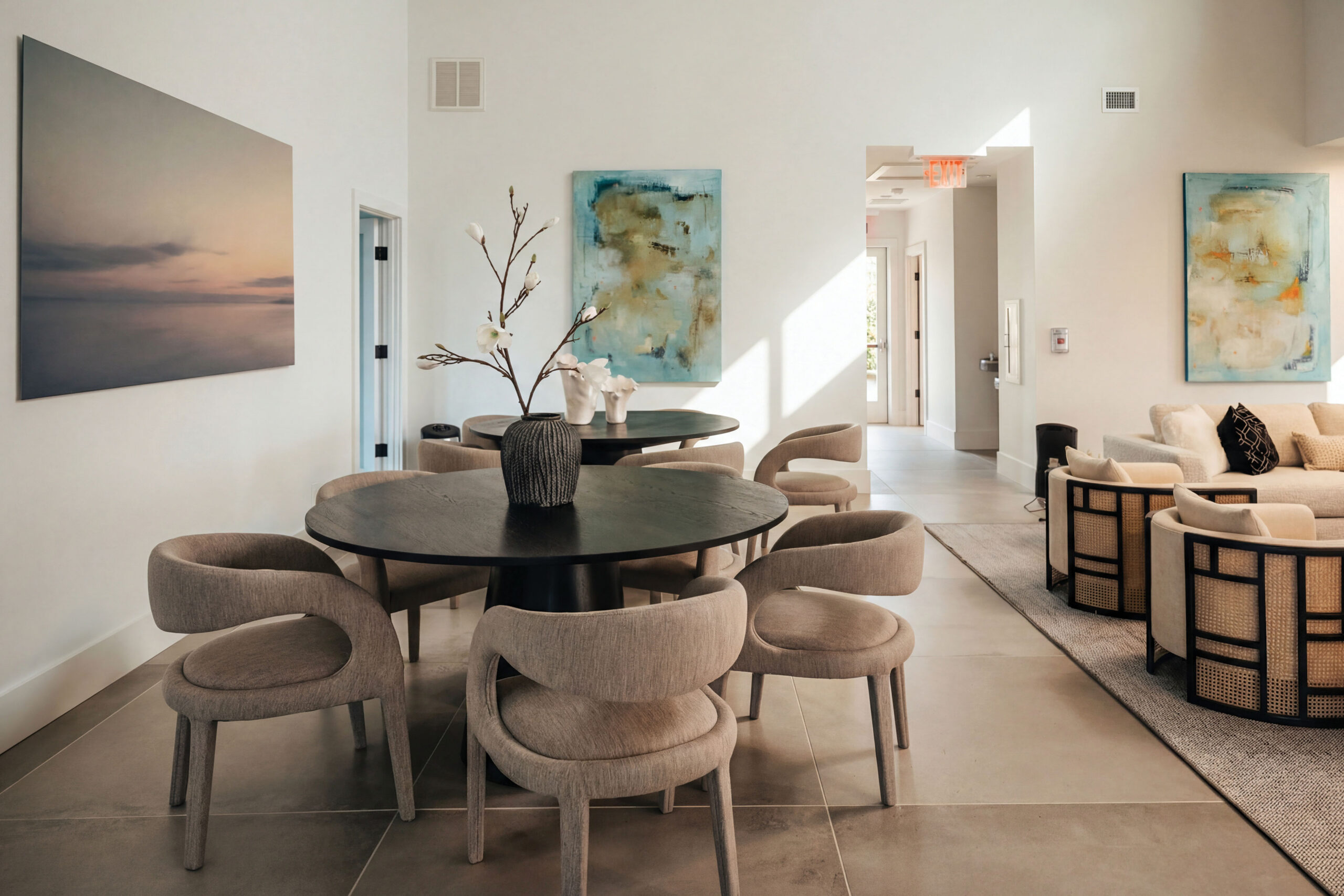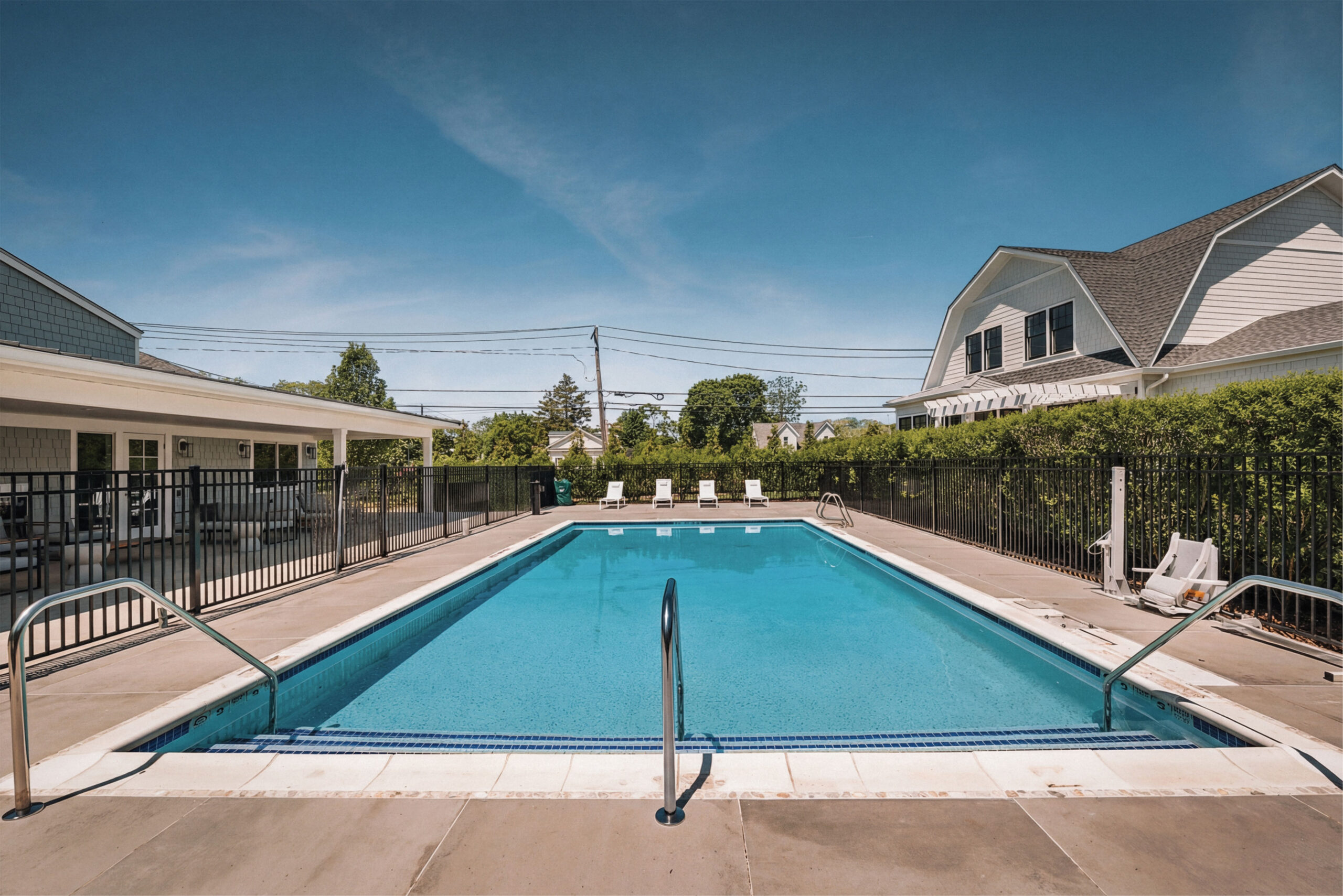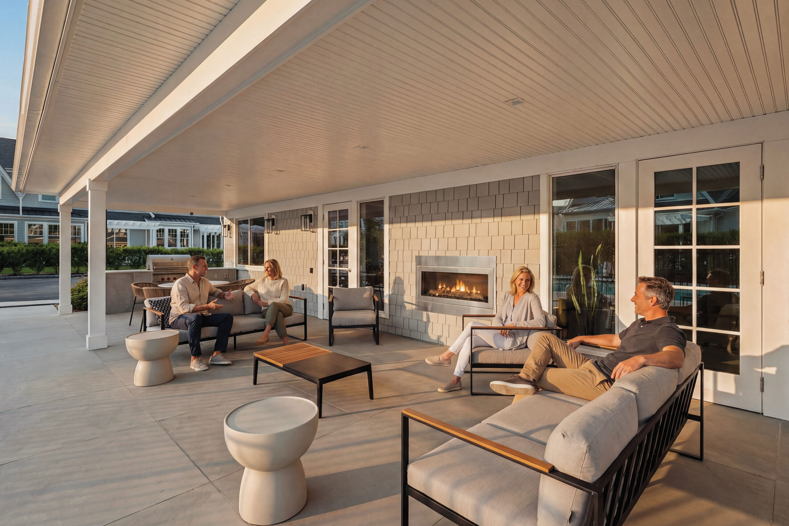 Residents enjoy access to The Gables’ private clubhouse and resort-style amenities, including a state-of-the-art fitness center with Pelotons, free weights, and a private training and yoga studio, a sophisticated lounge with vaulted ceilings and gas fireplace, and a luxury entertaining kitchen appointed with Sub-Zero and Wolf appliances and Porcelanosa finishes. Outdoor amenities include a heated pool with sun lounges, covered patio with fireplace, and a custom Wolf outdoor grilling station designed for effortless entertaining.