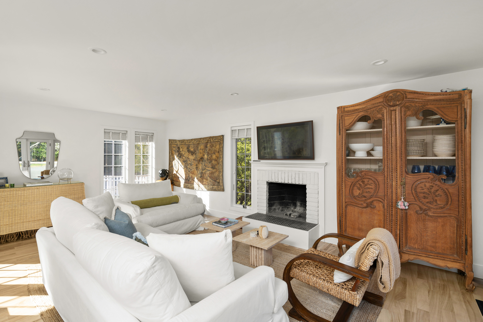 Set on 1.15 acres+/- and surrounded by the natural serenity of Westhampton, this light-filled residence offers 2,200 SF+/- across three finished levels, blending clean modern updates with warm, inviting interiors. Thoughtfully renovated, the home brings together an open layout, soft natural textures, and seamless indoor-outdoor flow. With 3 bedrooms, 3 full bathrooms, and a heated pool with tennis court, the property delivers an easy, turnkey Westhampton escape just minutes from the ocean and Westhampton Beach Village.