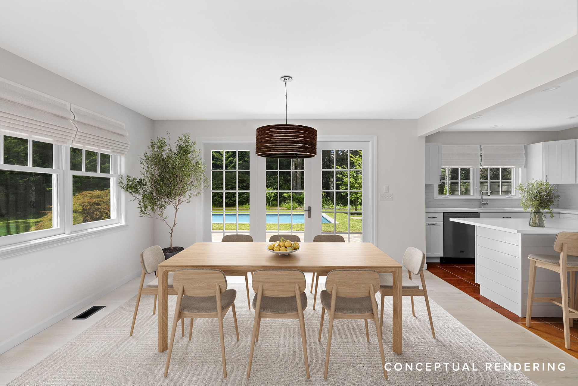 Outdoors, the home opens onto beautifully landscaped grounds anchored by a brand-new 16’ x 32’ gunite pool finished in bluestone and porcelain tile. Corner steps offer a subtle design detail, while specimen plantings surround the property to create a serene, private setting.