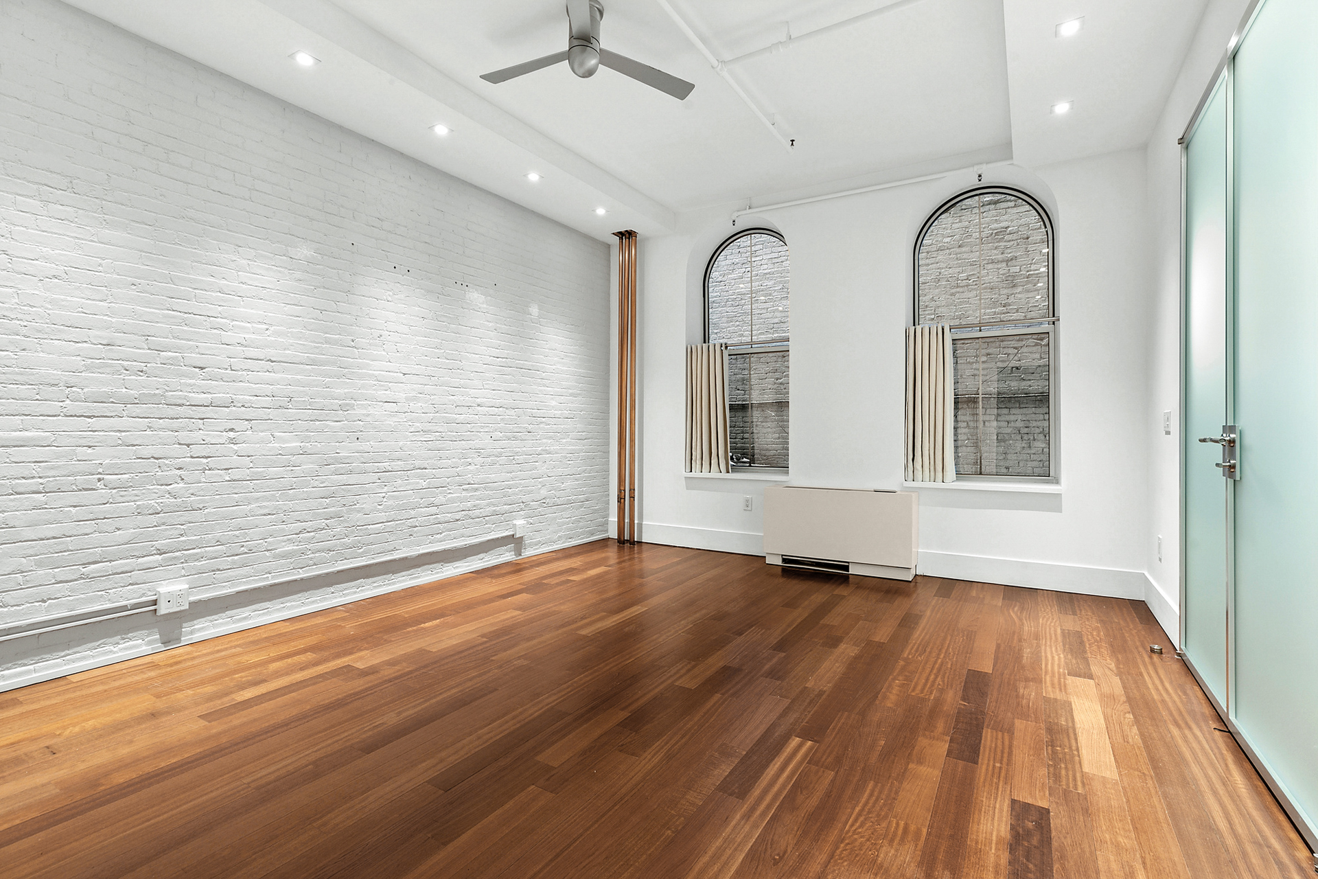 Residence 2A blends original details—exposed brick, cast iron columns, wood beams, copper piping—with modern features like multi-zone HVAC, Lutron lighting, and custom millwork. It’s designed for practical, contemporary living.