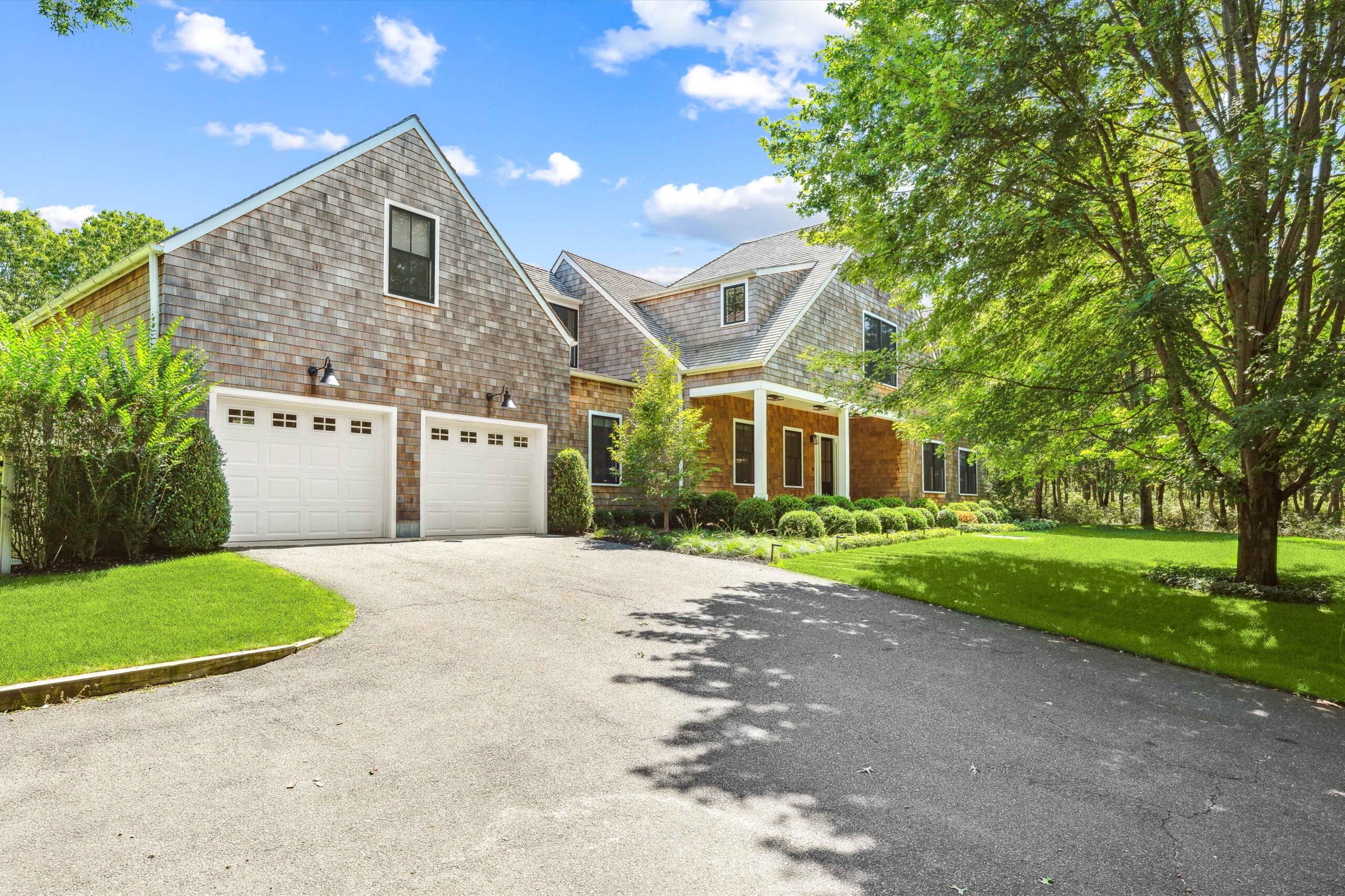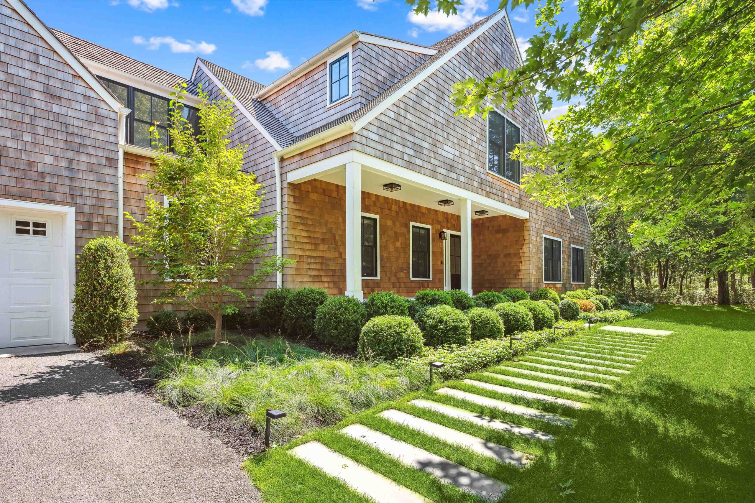 Centrally located between Bridgehampton and Sag Harbor, this sophisticated Sagaponack residence sits on .87 acres+/- and spans 6,292 SF+/- across three finished levels. Recently renovated in 2021 by Craft Modern Architects, the home reflects a meticulous blend of contemporary comfort, clean architectural lines, and warm natural textures. With 5 bedrooms, 5 full and 1 half bathrooms, and a heated attached 2-car garage, the residence offers both scale and thoughtful design. Nestled along a quiet stretch of Toppings Path, the property is surrounded on one side by hundreds of acres of conserved land within the Long Pond Greenbelt, creating rare privacy and protected natural views. The home lies within 2 miles+/- of Bridgehampton and Sag Harbor, placing renowned restaurants, boutiques, farmstands, and ocean beaches conveniently close while maintaining the serenity of a retreat-like setting. Privately set behind mature trees, the home is approached by a long driveway and features classic Hamptons architecture with cedar-shingle siding, crisp trim, and a welcoming covered entry. Thoughtful landscaping of boxwoods and layered plantings complements the natural surroundings.